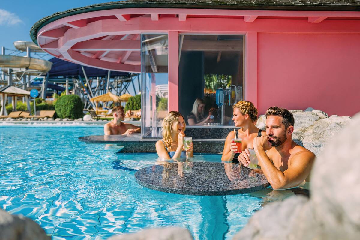 Die exotische Therme lädt zum Entspannen und Wohlfühlen unter Palmen ein. Neben den unzähligen Wasser- und Wärmeattraktionen bereichern wohltuende Beauty- und Aktivprogramme den Thermenbesuch. Liebevoll gestaltete Kids Pools, kunterbunte Ferienanimationen und eine Vielzahl weiterer Familienattraktionen lassen nicht nur Kinderherzen höherschlagen.